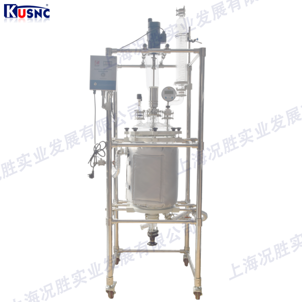 上海況勝實業生產制造的定制型磁力密封攪拌反應釜為雙層玻璃設計,內膽放入反應物料,做攪拌反應,夾套可通入冷熱源(冷凍液,熱水或熱油)做循環加熱或冷卻反應。在恒溫,密閉的空間內,可根據使用要求在常壓或負壓條件下進行攪拌反應,并能進行反應溶液的回流與蒸餾與萃取,是現代精細化工、生物制藥和新材料合成的理想中試及生產設備。
