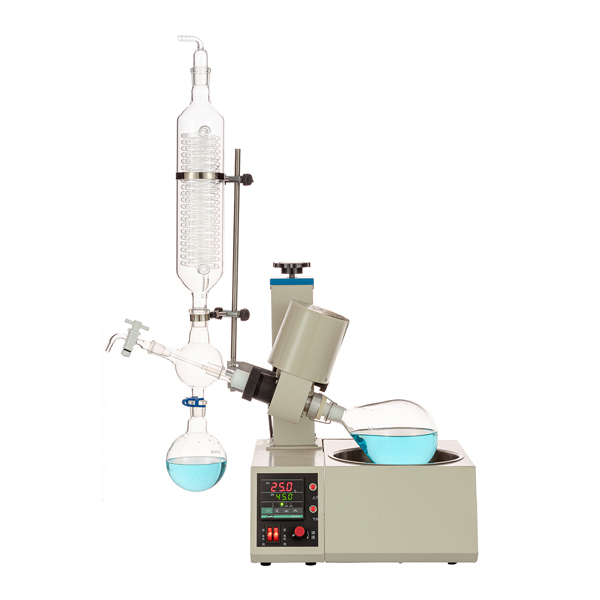 旋轉蒸發器主要用于減壓條件下連續蒸餾大量揮發性溶劑。例如蒸餾萃取液和色譜分離時的接收液。旋轉蒸發器的基本原理是蒸餾燒瓶連續旋轉的減壓蒸餾。作為蒸餾的熱源,一般都配套有相應的恒溫水箱。